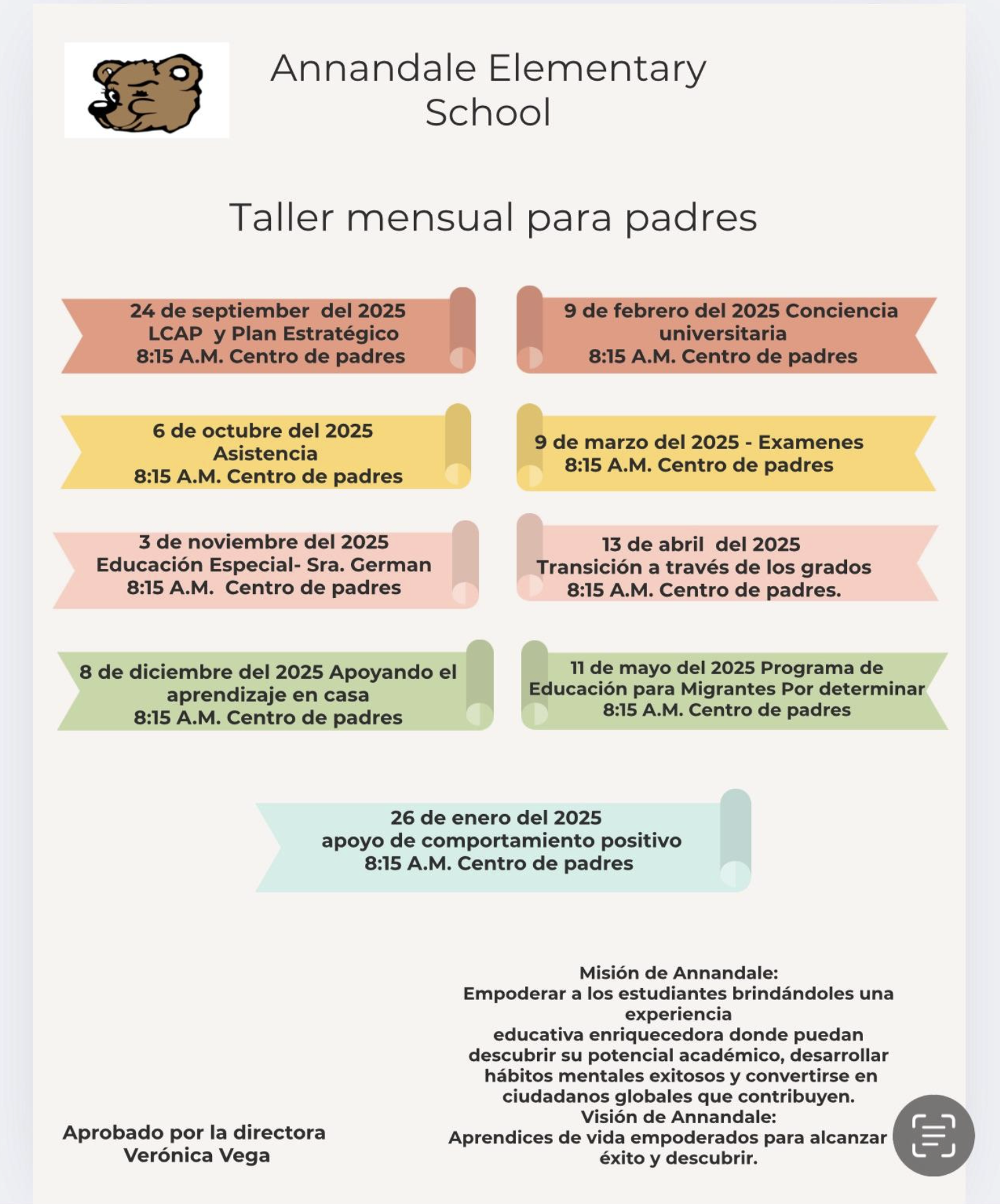 Annandale Elementary Talleres Mensuales para Padres